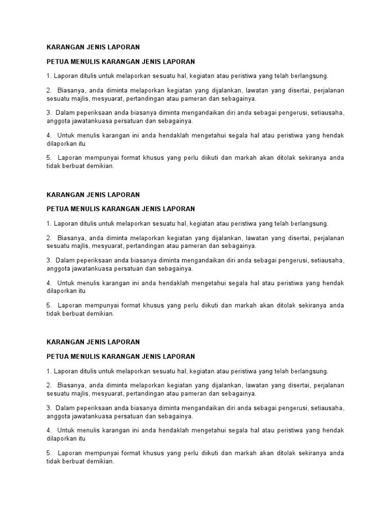 Format karangan laporan upsr youtube. Contoh karangan laporan pt3 terbaik. Anda sebagai setiausaha persatuan itu dikehendaki menulis satu laporan lengkap tentang lawatan tersebut. Karangan a ditulis sebanyak 80 patah perkataan dengan menggunakan semua perkataan atau frasa yang diberi.